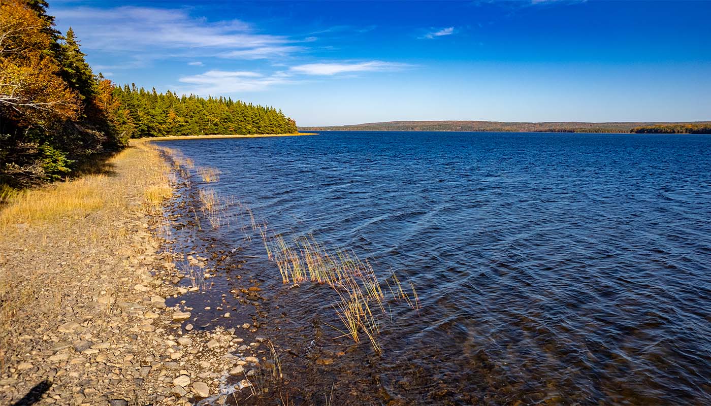 Der See ist Teil einer größeren Seenlandschaft auf Cape Breton Island in Nova Scotia.