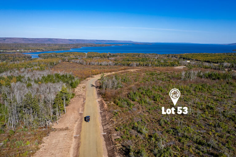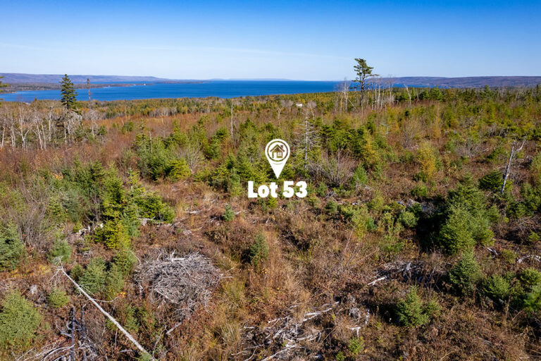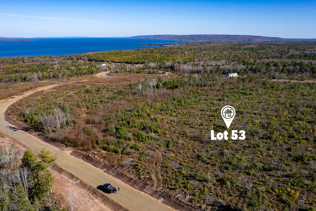 Das Lot 53 ist rd. 9.930 Quadratmeter groß und hat einen idealen rechteckigen Zuschnitt. Der Höhepunkt des Grundstücks ist die einzigartige Aussicht. Da das Grundstück mit einem sehr jungen und niedrigen Baubestand bewaldet ist, hat man einen unbeschreiblichen Weitblick nicht nur über den See Bras d’Or Lake sondern auch auf die Hügel der Marble Mountains und die gesamte Umgebung. Man kann von diesem Grundstück aus sowohl den Sonnenaufgang beobachten als auch den Sonnenuntergang von der eigenen Terrasse aus genießen…